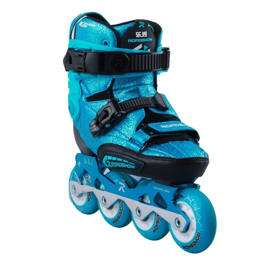 Patines en línea de alta gama para niños Roadshow KX4+ Blue, en color azul con detalles brillantes, ideal para freestyle y slalom.